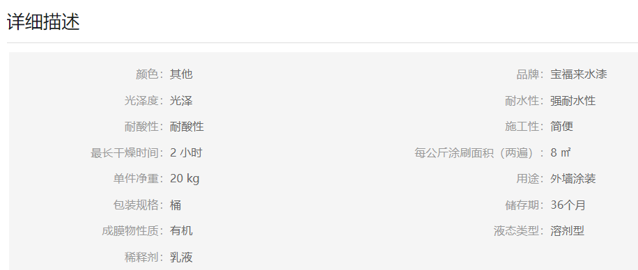 產(chǎn)品: 瀏覽次數(shù):868寶福來超耐候外墻彈性工程漆——舒緩反應(yīng)、耐水性、耐黃變