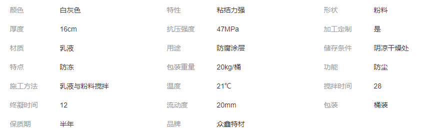 產(chǎn)品: 瀏覽次數(shù):729眾鑫特材 環(huán)氧樹脂砂漿 防水防腐防靜電 加固補(bǔ)強(qiáng)不掛留